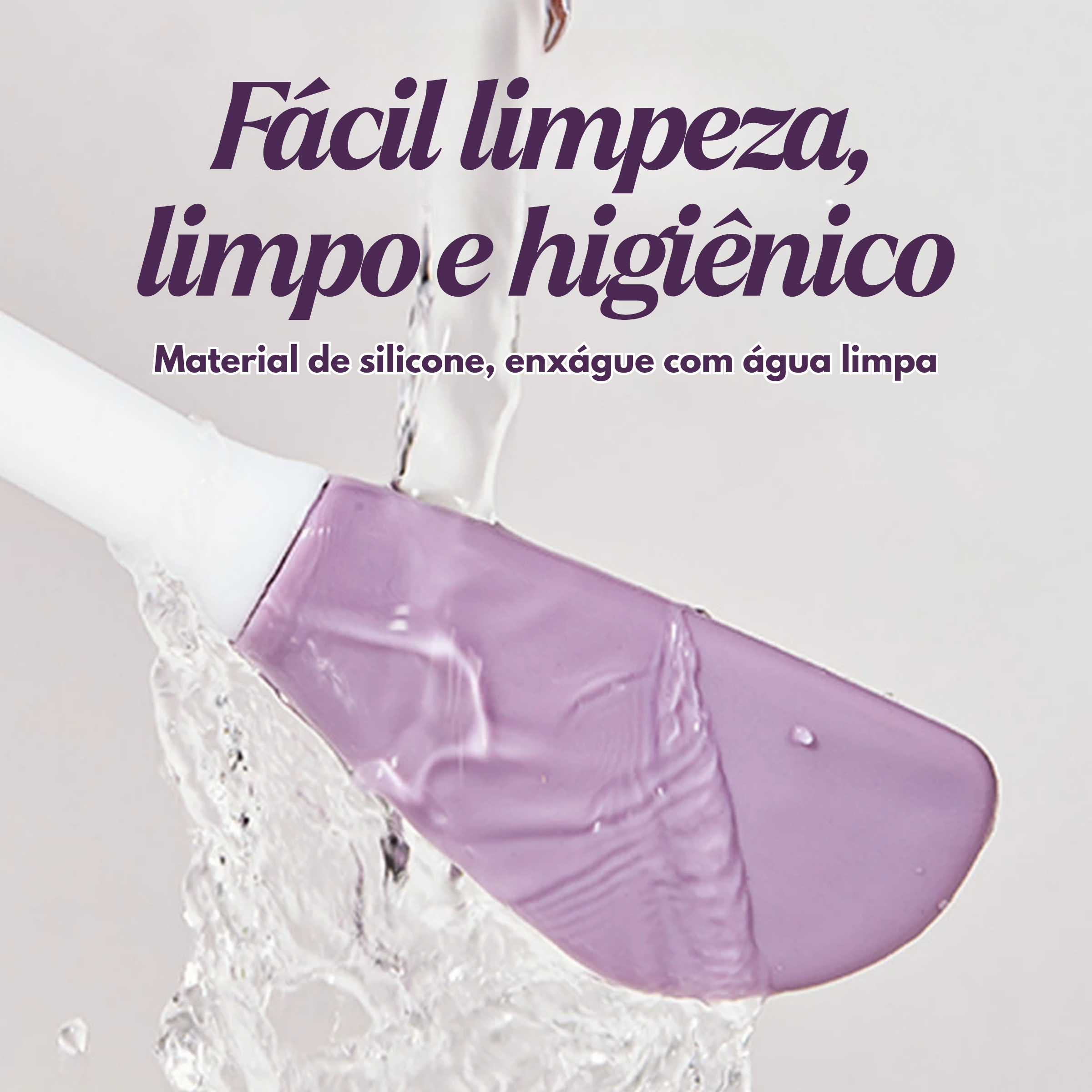 Aplicação de Máscara: Utilize a espátula de silicone macia e ergonômica para espalhar a máscara facial sem agredir a pele.