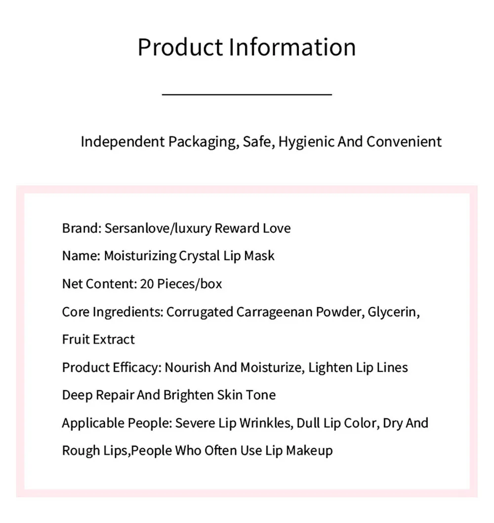 Aplique o patch nos lábios limpos e secos. Deixe agir de 15 a 20 minutos. Para um tratamento intensivo, utilize à noite e acorde com lábios macios e radiantes.